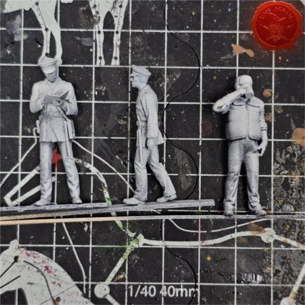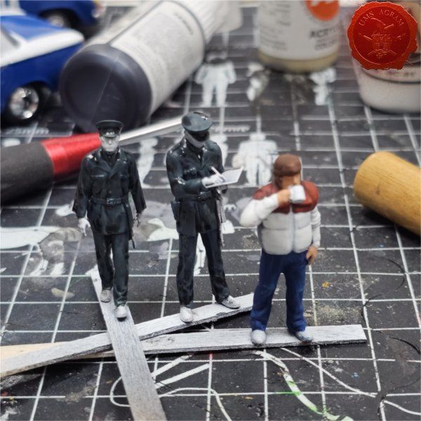 Nakon baze i vozila, bacio sam se na bojanje minijatura. Dva milicajca i vozač kamiona. Prvi korak je bila temeljna boja – crna pa bijela.