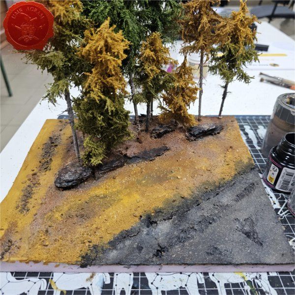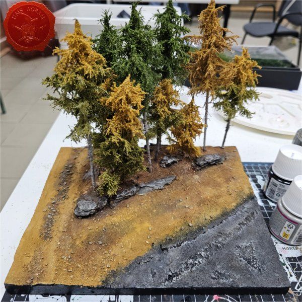 Do sada sam završio s izradom baze, bojanjem baze, bojanjem interijera vozila i bojanjem figura. Sada je došlo vrijeme za dodavanje vegetacije